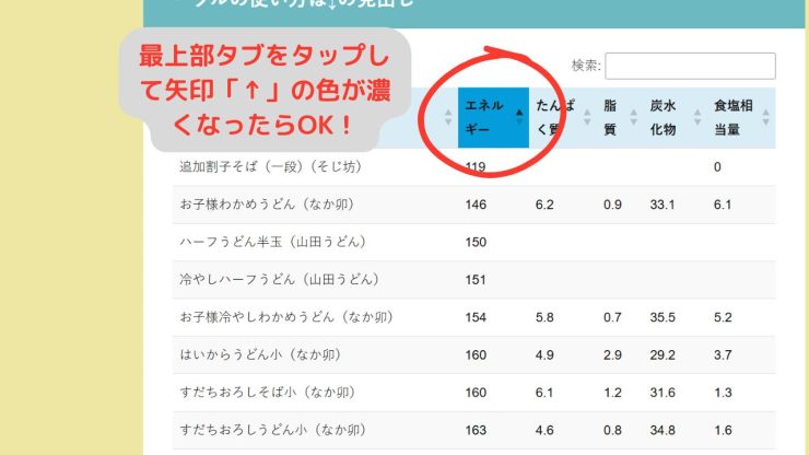 テーブル(検索機能、昇順、降順切り替え機能)の使い方